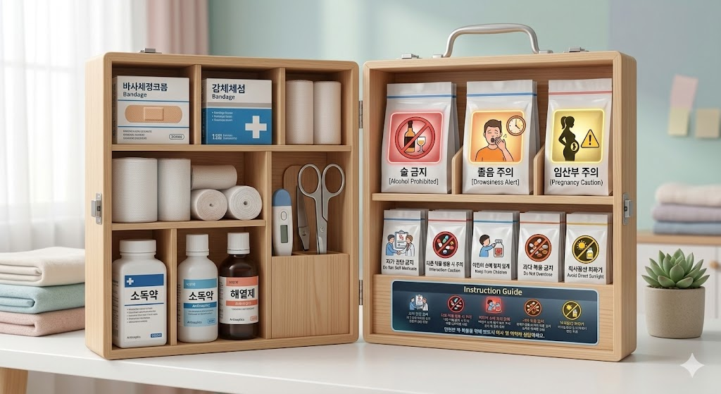 - 유통기한 지난 약은 폐기: 오래된 알약이 변색되었거나 가루약이 굳었다면 아까워 말고 **'폐의약품 수거함'**에 버려주세요.