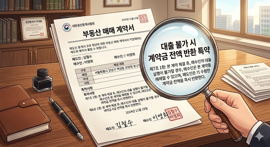 "임대인 또는 임차 목적물(집)의 하자로 인해 전세자금대출이 불가할 경우, 계약은 무효로 하고 임대인은 수령한 계약금 전액을 임차인에게 즉시 반환한다."