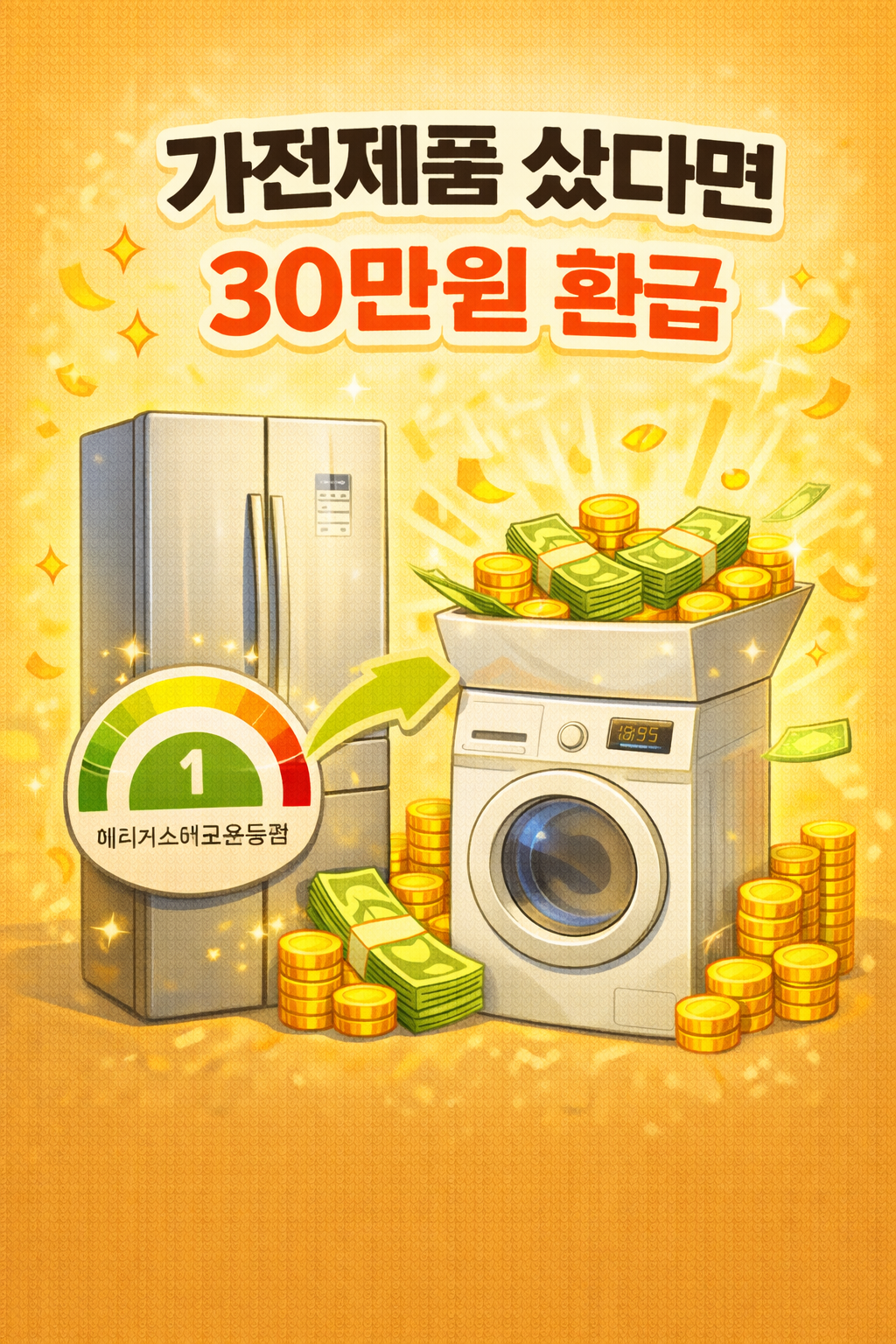 가전제품 사고받은 영수증, 그냥 구겨서 버리셨나요? 그 종이 한 장이 30만 원짜리 수표가 될 수 있습니다. 지금 당장 베란다에 있는 세탁기나 주방 냉장고의 등급 스티커를 확인해 보세요. 쏠쏠한 환급금이 여러분을 기다립니다!