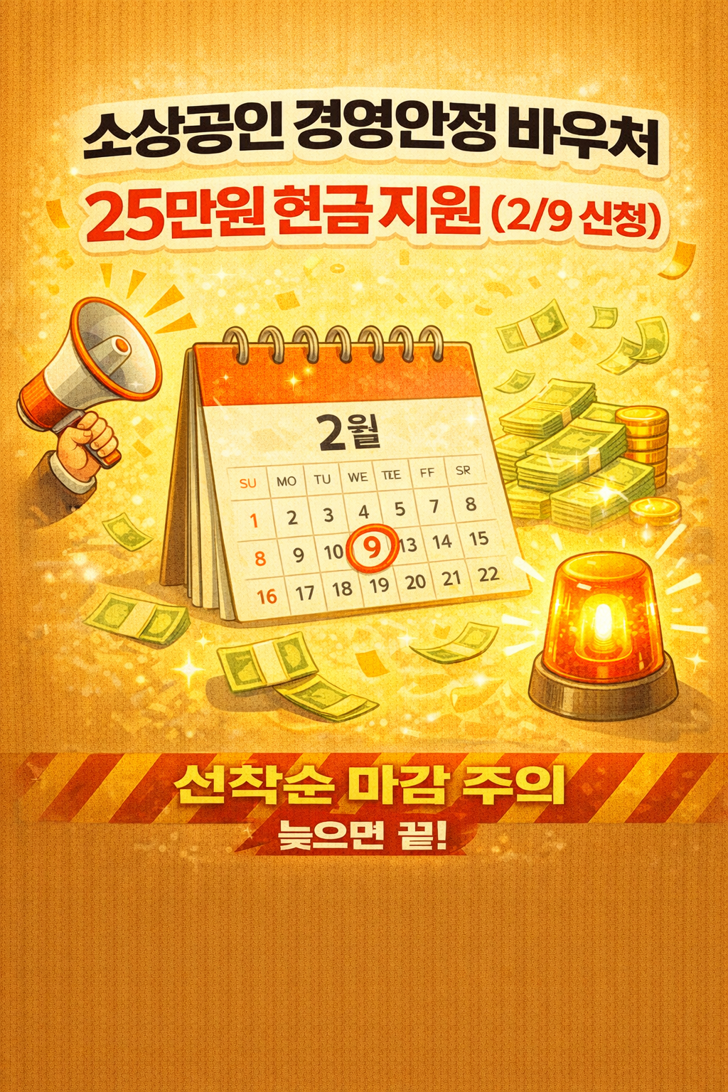 별도의 복잡한 서류 없이 사업자 번호 입력만으로 대상 확인이 가능해서 정말 간편합니다. 25만 원이면 한 달치 고정비로 아주 쏠쏠한 금액이니, 사장님들 달력에 2월 9일 꼭 체크해 두셨다가 바로 신청하시길 바랍니다!