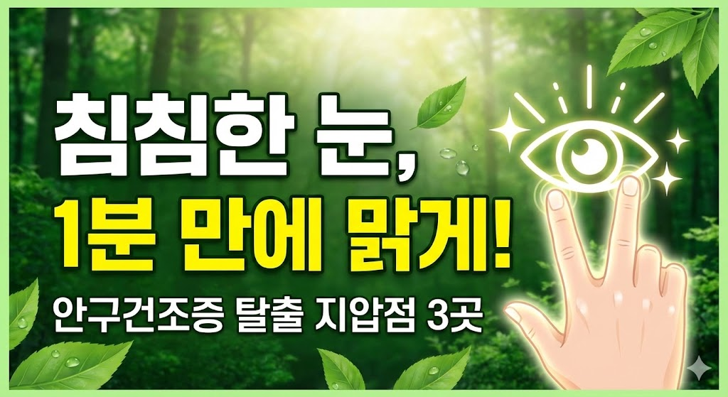 지금 바로 스마트폰 화면에서 눈을 떼고, 창밖 먼 곳을 바라보며 지압을 한 번 해보세요. 세상이 훨씬 선명해 보일 거예요! 매일 1분 투자로 소중한 내 눈 건강을 지켜주세요.