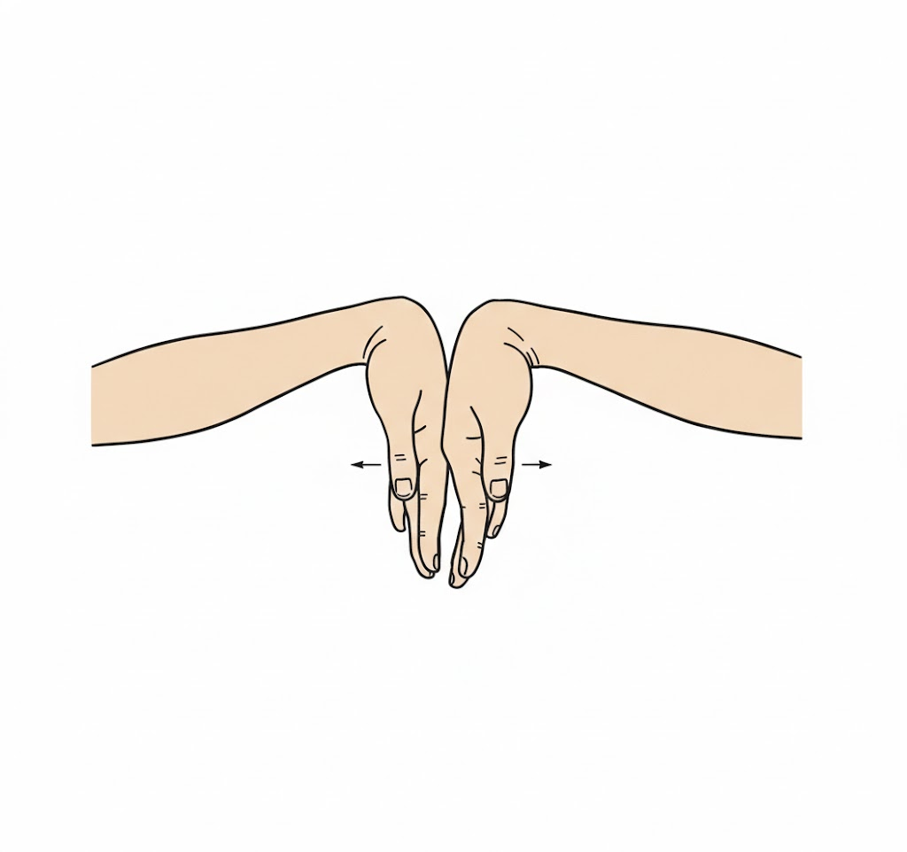 - 자세: 양손 등을 서로 마주 대고 가슴 높이로 들어 올립니다. (기도하는 손 반대 모양)